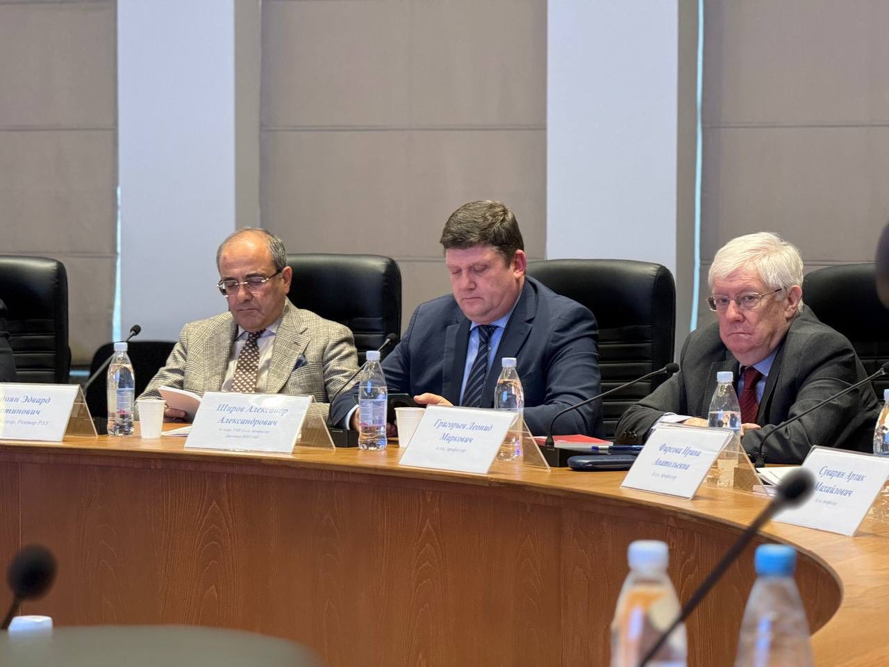 The session was attended by RAU Rector, Professor Edward Sandoyan; RAU Vice-Rector for Research, Professor Pargev Avetisyan; Director of the RAU Institute of Economics and Business, Zhirayr Aramyan; Corresponding Member of the Russian Academy of Sciences, Director of the Institute of Economics of the Russian Academy of Sciences, Professor Mikhail Golovnin; Corresponding Member of the Russian Academy of Sciences, Director of the Institute of National Economic Forecasting of the Russian Academy of Sciences, Professor Alexander Shirov; Academic Supervisor of the Faculty of World Economy and World Politics of the National Research University Higher School of Economics, Professor Leonid Grigoriev; Professor of the Department of Marketing at the Financial University under the Government of the Russian Federation, Professor Irina Firsova; and Deputy Director of the Higher School of Service and Trade of Peter the Great St. Petersburg Polytechnic University, Associate Professor Irina Kapustina.