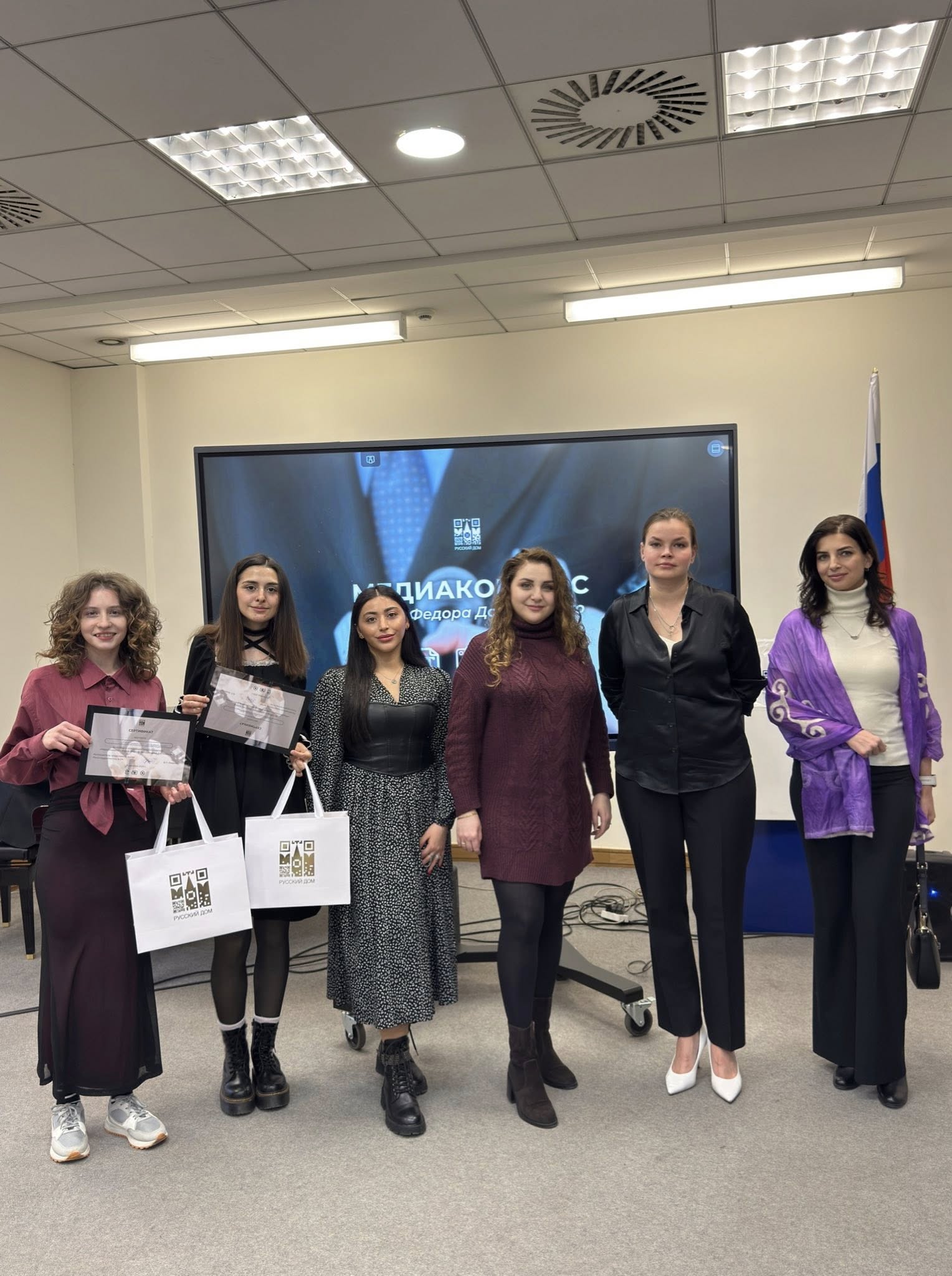 Приз "ТелеДостоевский" получила студентка Анастасия Маркарян, а Анна Костанян была отмечена за лонгрид "Диалог культур", опубликованный на платформе EduRAU, и за репортаж-сторителлинг "История победы: слёзы, гордость и любовь".