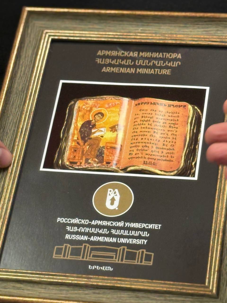 В знак признания заслуг юбиляру вручили армянскую миниатюру как символом уважения и благодарности за преданность профессии.