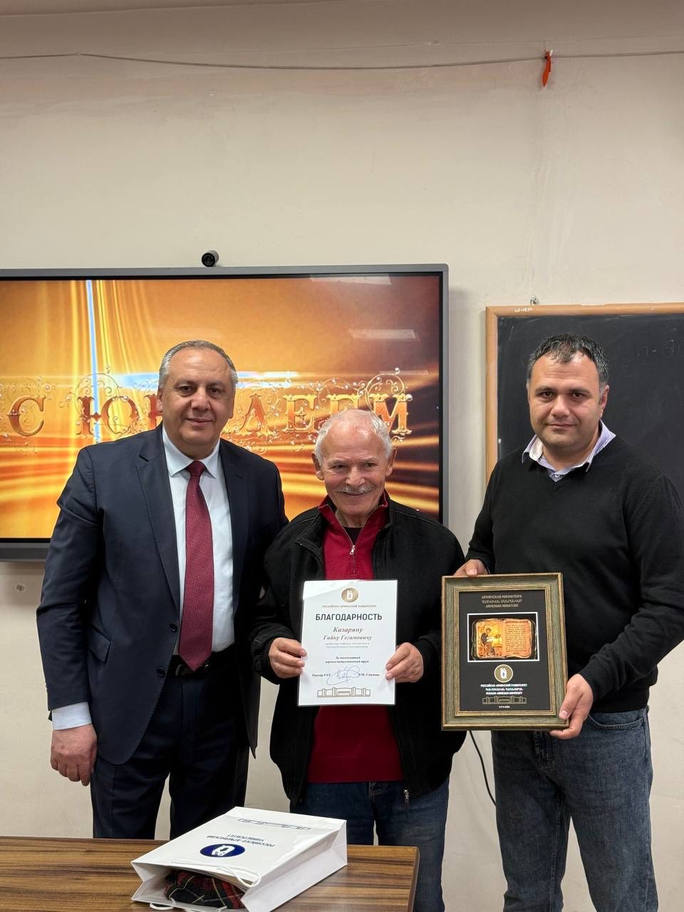 За многолетний научно-педагогический труд профессору Гайку Казаряну вручили благодарность