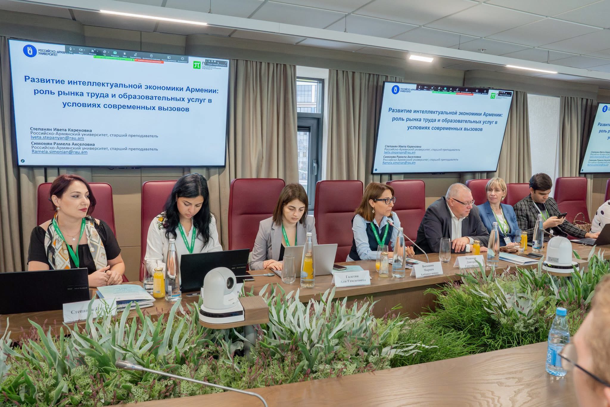 В ходе дискуссии были представлены два доклада: "Социальное доверие и развитие человеческого капитала: межстрановой анализ" (к.э.н., доцент Ани Галстян), "Развитие интеллектуальной экономики Армении: роль рынка труда и образовательных услуг в условиях современных вызовов" (старшие преподаватели кафедры Ивета Степанян и Рамела Симонян).