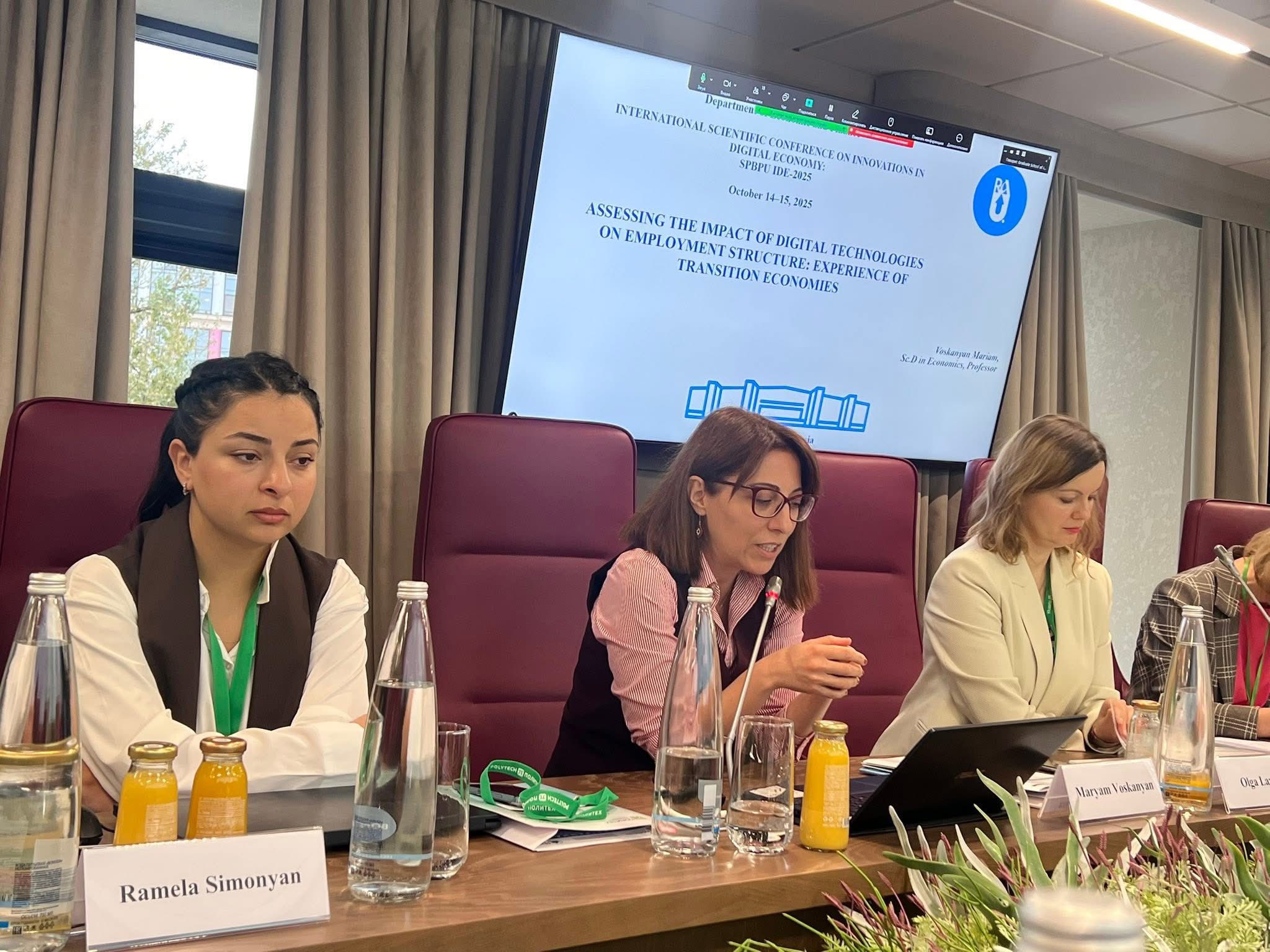 Ведущие научные сотрудники кафедры экономики и финансов Российско-Армянского университета приняли участие в VII Международной научной конференции по инновациям в цифровой экономике (IDE-2025), состоявшейся на базе Института промышленного менеджмента, экономики и торговли Санкт-Петербургского политехнического университета Петра Великого 14–15 октября.