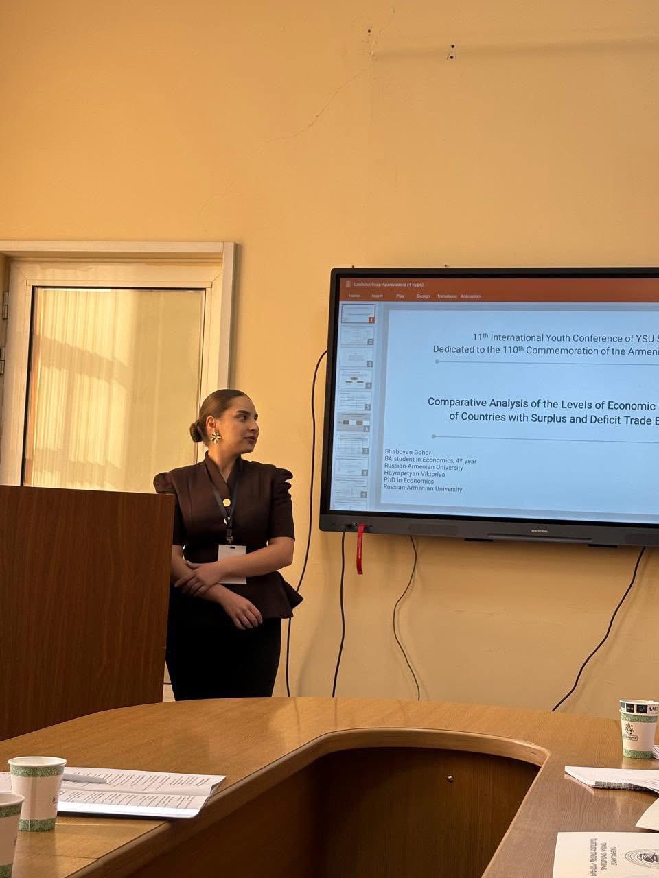 Студенты Российско-Армянского университета по направлениям "Экономика" и "Финансы" приняли участие в XI Международной молодежной научной конференции студенческого научного общества Ереванского государственного университета, посвящённой 110-й годовщине Геноцида армян.