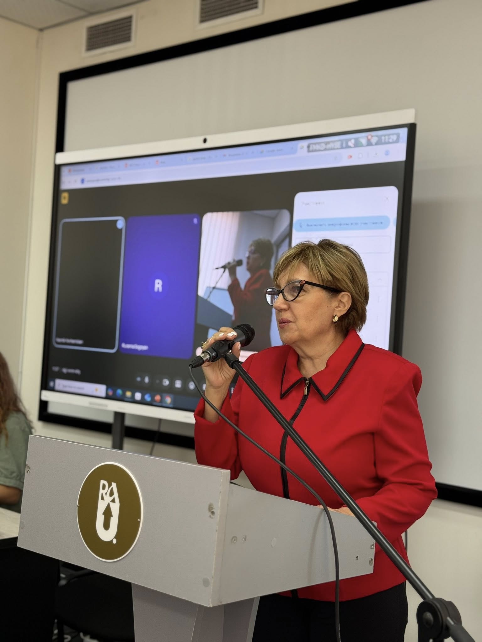Заведующая кафедрой теории языка и межкультурной коммуникации РАУ Армине Симонян открыла конференцию докладом на тему "Философия Бахтина и её применение в политическом дискурсе". Она проанализировала ключевые идеи русского философа, культуролога, литературоведа, филолога Михаила Бахтина о диалогичности мышления, взаимодействии сознаний и полифонии смыслов, подчеркнув актуальность этих концепций для анализа современного языка и коммуникации.