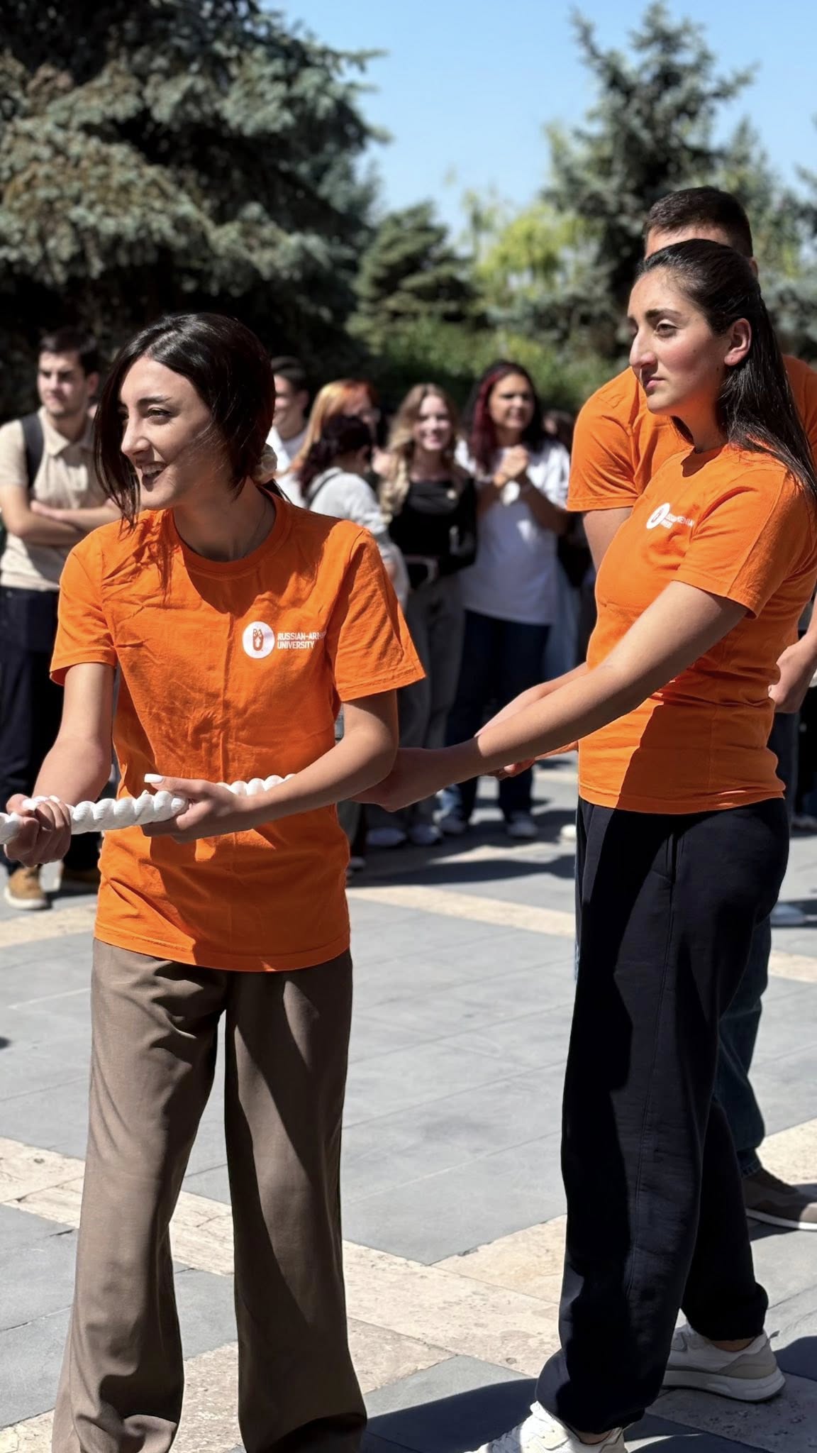 Мероприятия, приуроченные ко Дню Российско-Армянского университета, стартовали 15 сентября с турнира по перетягиванию каната, затем прошла церемонии возложения цветов к мемориальной доске в честь первого ректора РАУ, академика Левона Мкртчяна и мемориалу в память героически погибших при защите Родины студентов.