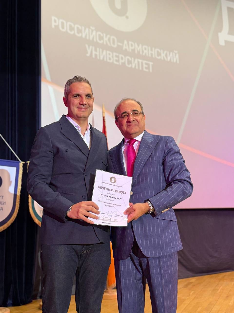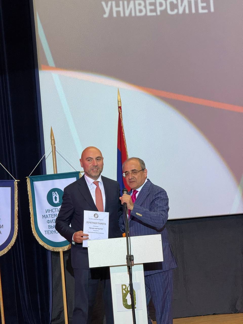 С поздравлениями к вузу обратились заместитель МОНКС Армении Артур Мартиросян, советник Посольства РФ в РА и представитель Минобрнауки России в Армении Михаил Вождаев, замруководителя Россотрудничества в Армении Екатерина Андреева, а также партнеры университета и выпускники.