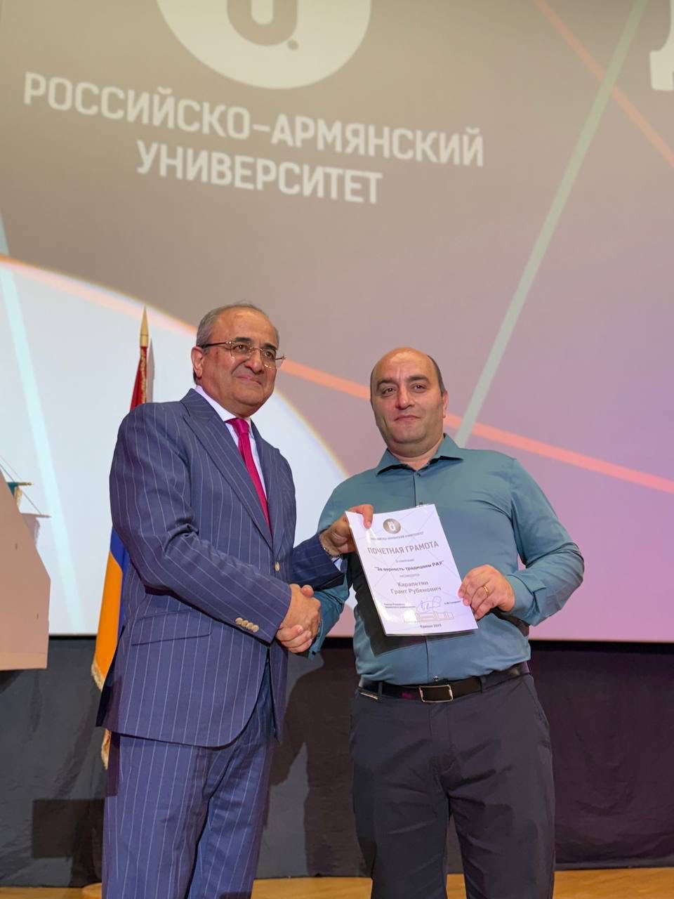 В церемонии приняли участие как руководство РАУ, студенты и преподаватели, так и представители Посольства России в Армении и Русского Дома в Ереване.