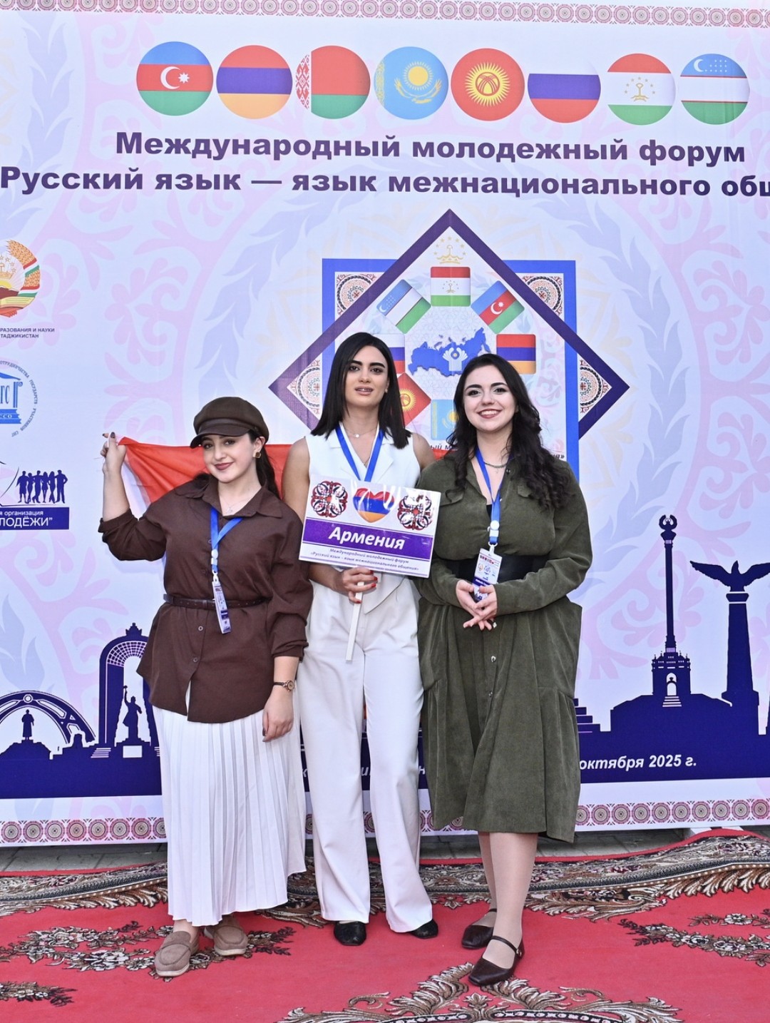 Студенты Российско-Армянского университета по направлению "Филология" приняли участие в Международном молодёжном форуме "Русский язык – язык межнационального общения", который прошел в Республике Таджикистан 4-10 октября. Форум был организован при поддержке Межгосударственного фонда гуманитарного сотрудничества государств-участников СНГ (МФГС), Министерства образования и науки Таджикистана и общественной организации "Дом молодёжи".