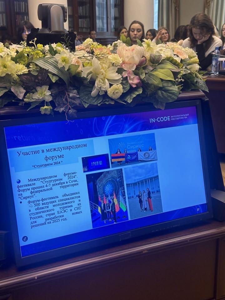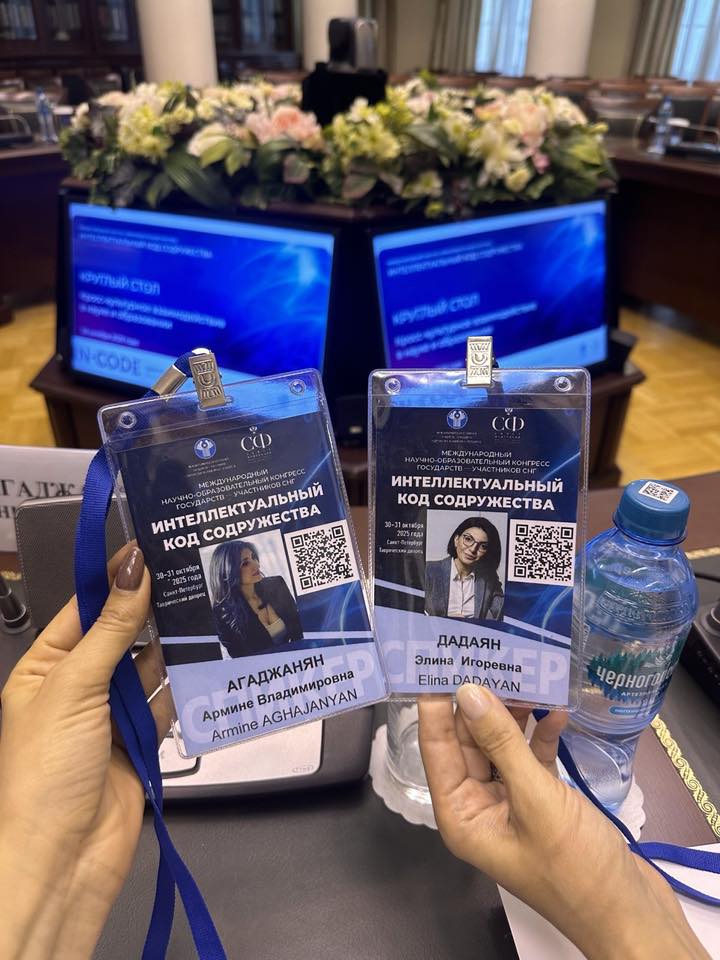 Заведующая кафедрой туризма и сферы услуг Российско-Армянского университета Армине Агаджанян и старший преподаватель кафедры экономики и финансов Элина Дадаян приняли участие в Международном научно-образовательном конгрессе "Интеллектуальный код Содружества", который прошёл в Таврическом дворце в Санкт-Петербурге 30-31 октября.