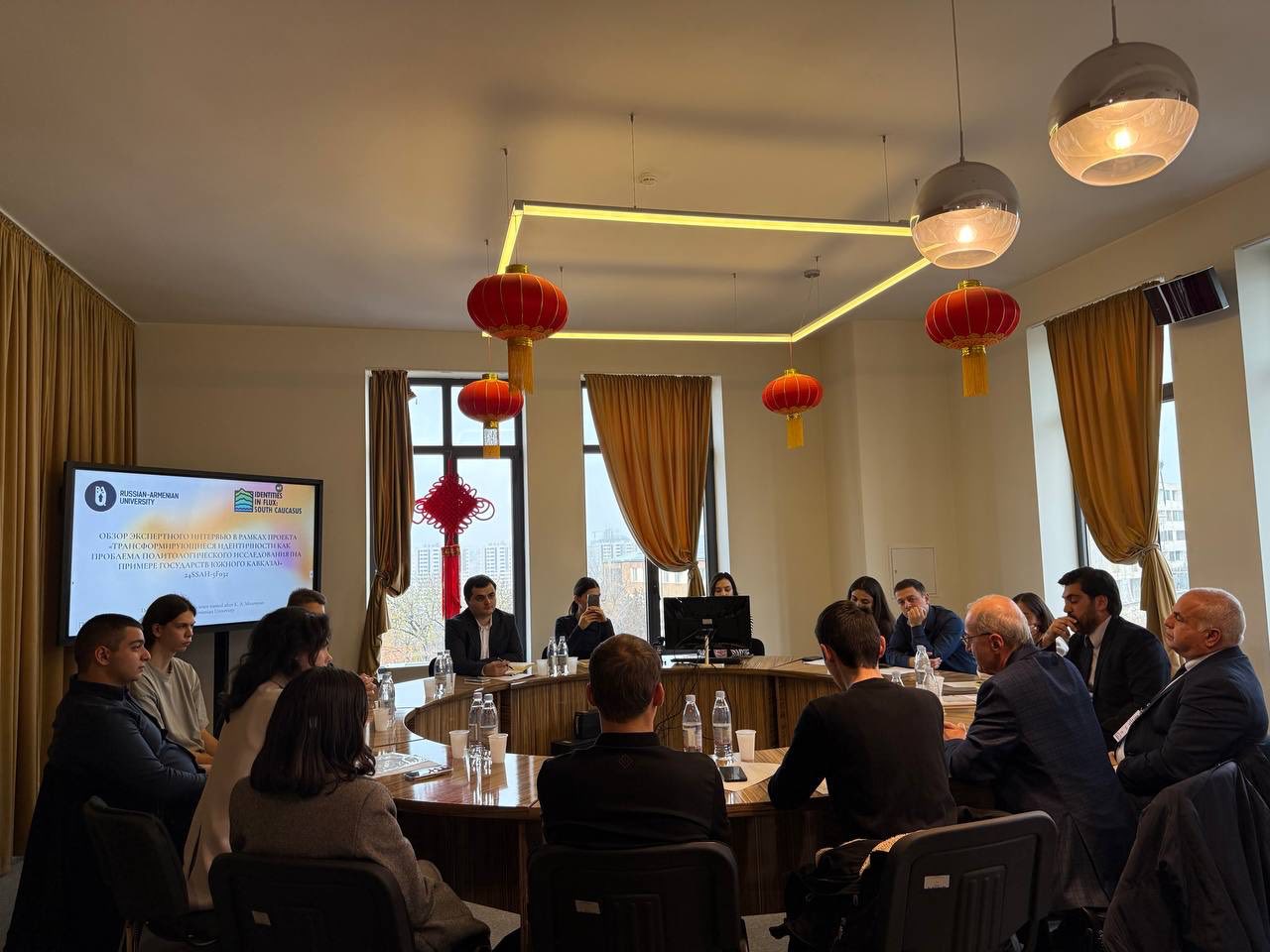 В рамках XIX Международной Годичной научной конференции 2 декабря в Российско-Армянском университете прошёл круглый стол "Трансформирующиеся идентичности на постсоветском пространстве". Организованное кафедрой политологии им. К.А. Мирумяна РАУ и Институтом арменоведческих исследований Ереванского государственного университета мероприятие собрало ведущих специалистов в области политологии и социальных исследований.