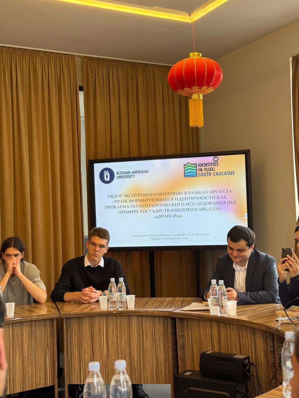 Отметим, что круглый стол состоялся в рамках проекта "Трансформирующиеся идентичности как проблема политологического исследования (на примере государств Южного Кавказа)" №24SSAH-5F032. Мероприятие позволило участникам обсудить актуальные вопросы формирования национальной идентичности, взаимосвязь государства и нации, а также влияние исторического и культурного контекста на современные процессы в регионе.