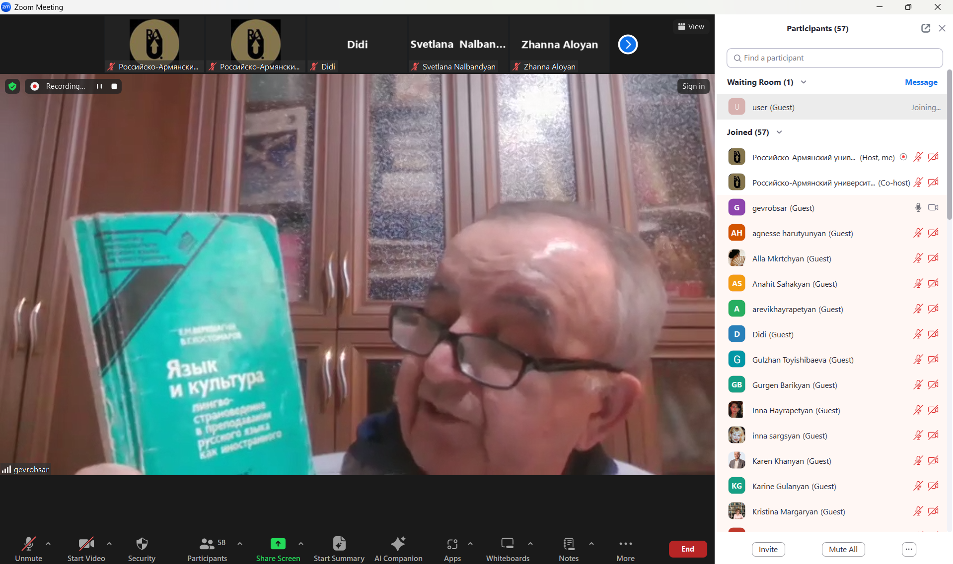 Организатором и модератором курса повышения квалификации выступил заведующий кафедрой русского языка и профессиональной коммуникации РАУ, руководитель Центра русистики, к.ф.н., доцент Карен Акопян. Открывая курс повышения квалификации, он приветствовал всех участников и подчеркнул значимость таких мероприятий для развития профессиональных навыков и компетенций преподавателей, а также их роль в контексте непрерывного образования и применения инновационных подходов в преподавании.