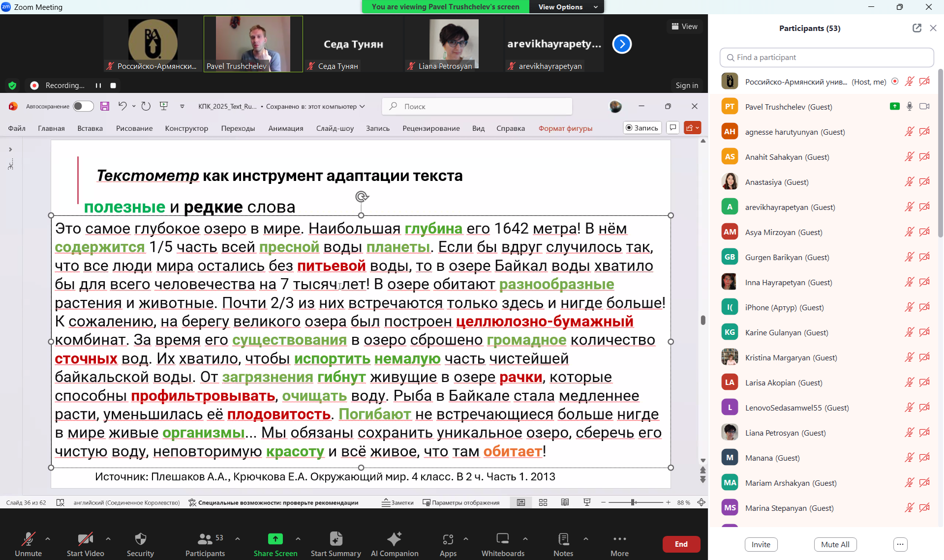 Кафедра русского языка и профессиональной коммуникации Института филологии и межкультурной коммуникации и Центр русистики Российско-Армянского университета организовали и провели 27-31 октября курс повышения квалификации "Инновационные и информационные технологии в методике преподавания русского языка – 2025" для учителей и преподавателей русского языка Республики Армения и зарубежья.