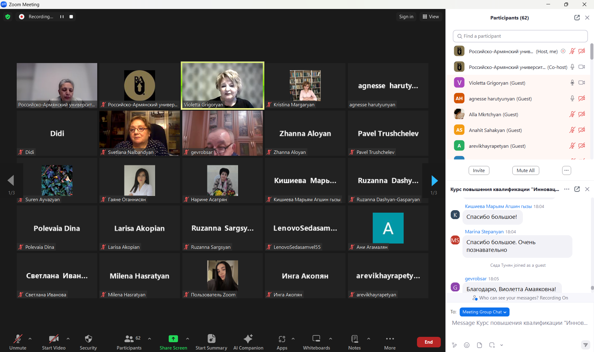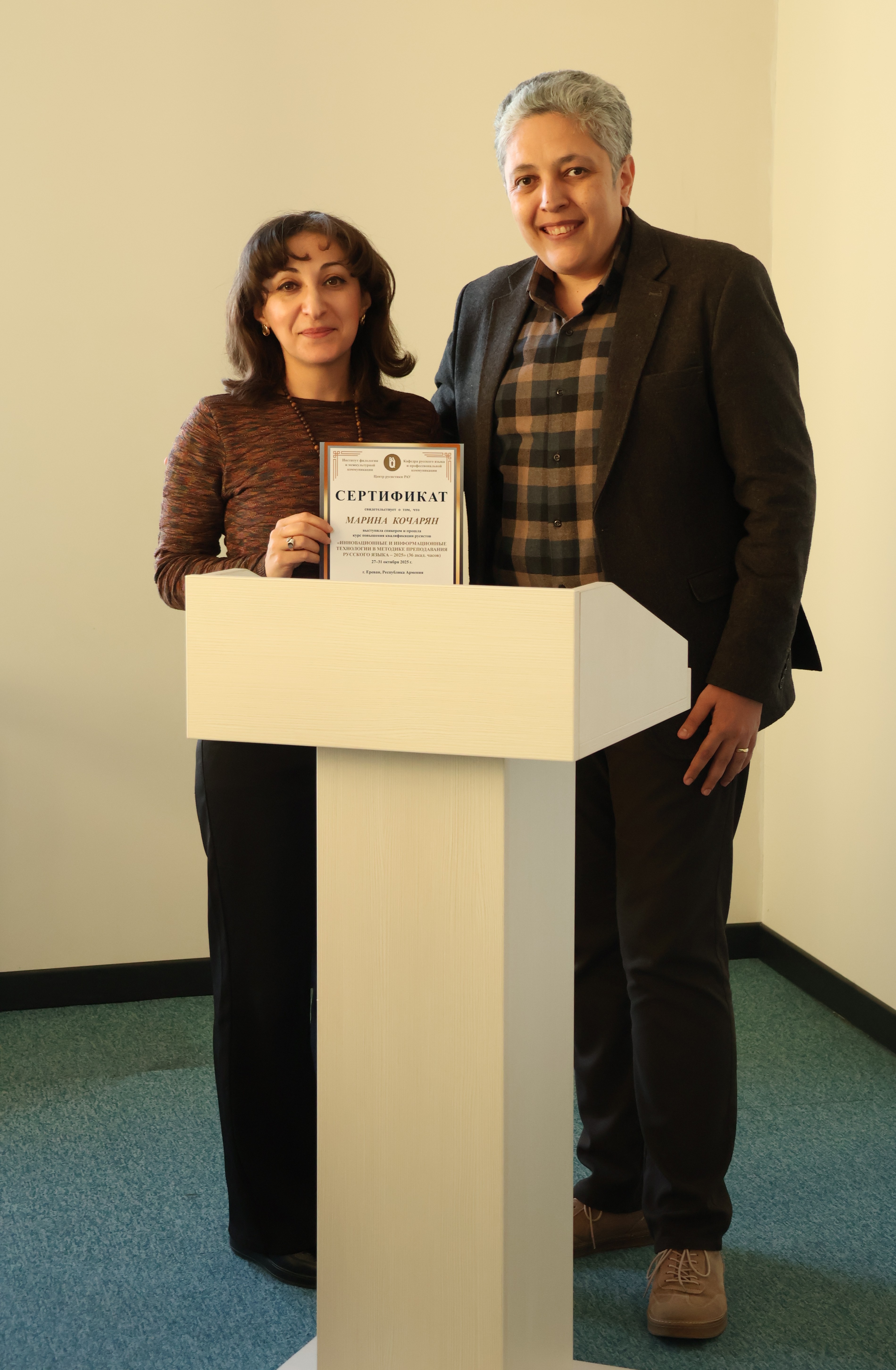 Курс повышения квалификации "Инновационные и информационные технологии в методике преподавания русского языка – 2025" был проведен в очном и очно-дистанционном форматах. Все участники КПК получили сертификаты образца Российско-Армянского университета.