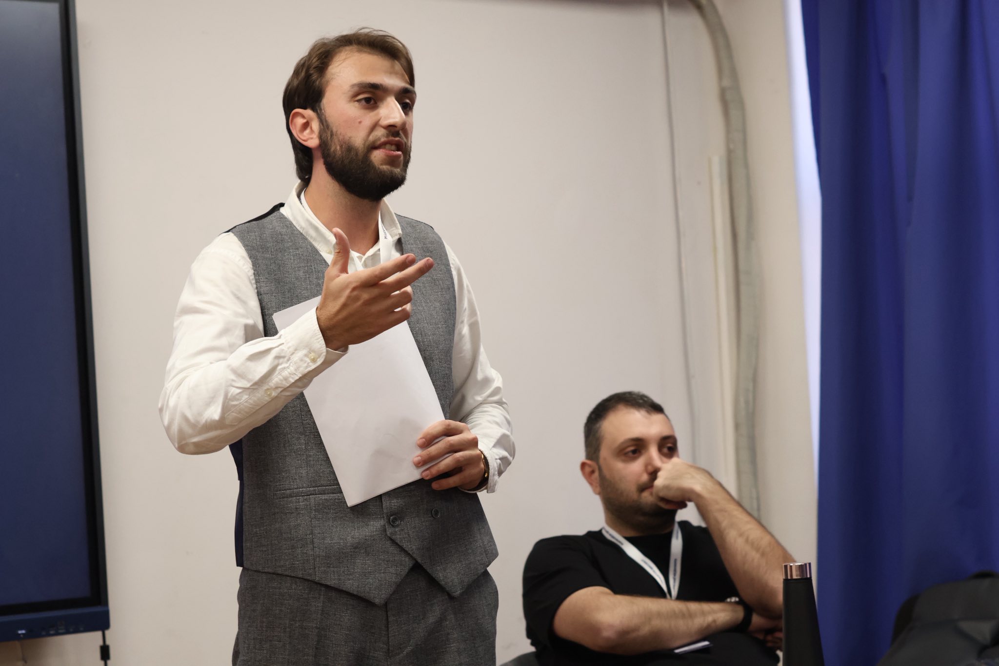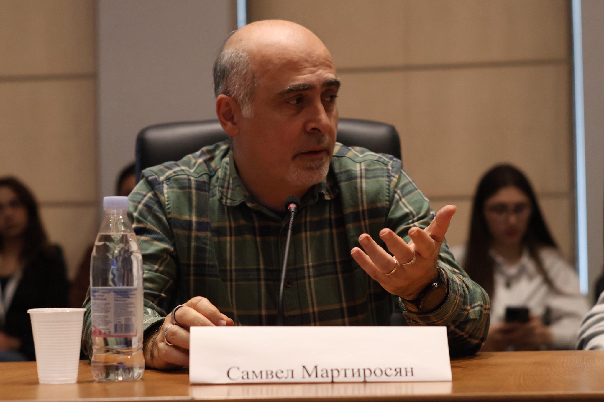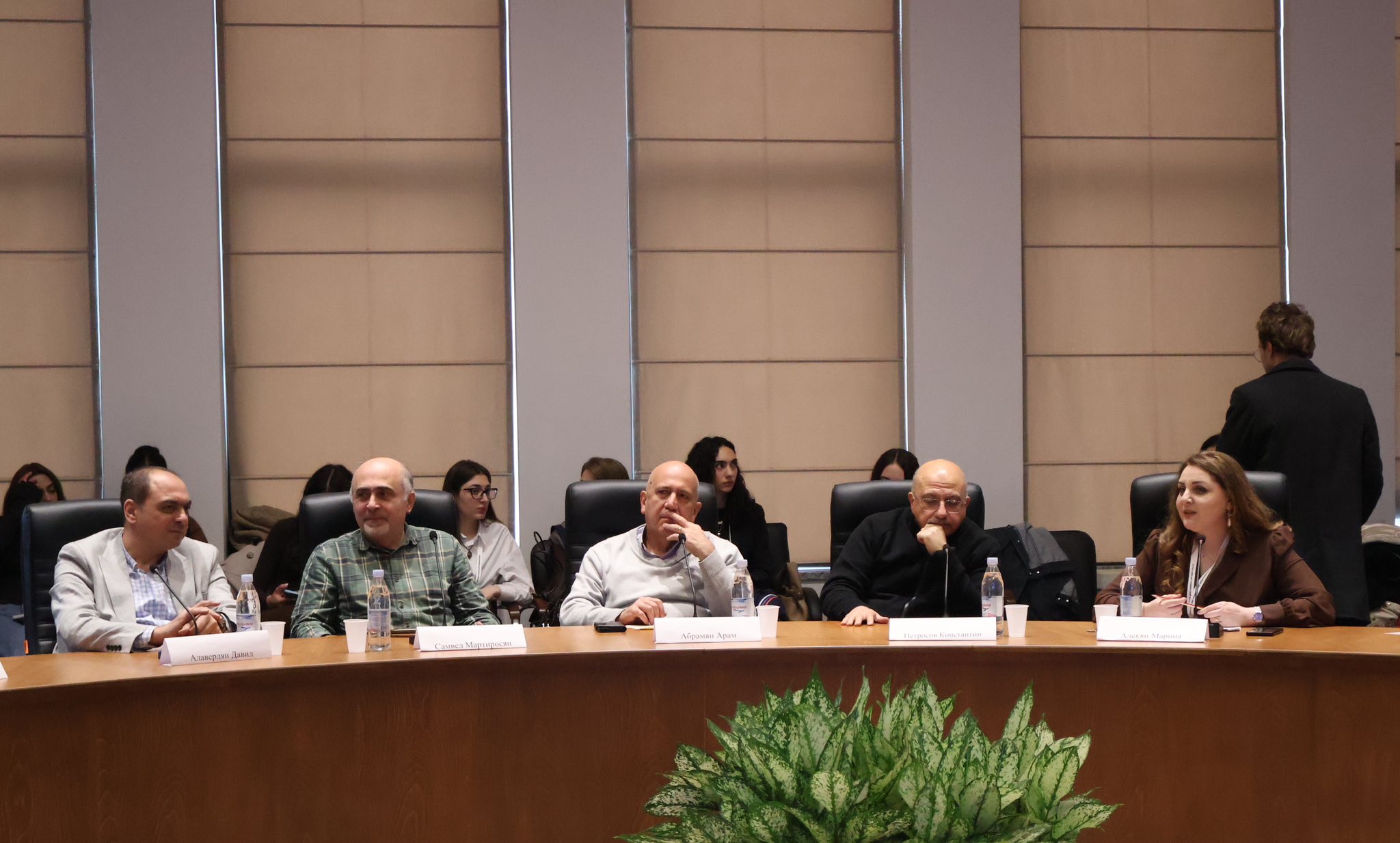 Главный редактор издания "Медиамакс", преподаватель кафедры журналистики РАУ Давид Алавердян, основатель информагентств "АРКА" и "Новости-Армения" Константин Петросов, главный редактор издания "Аравот" Арам Абрамян, медиаэксперт Самвел Мартиросян обсудили с участниками широкий спектр актуальных вопросов, стоящих перед СМИ в современном цифровом мире, включая вызовы и возможности, которые открывает искусственный интеллект.
