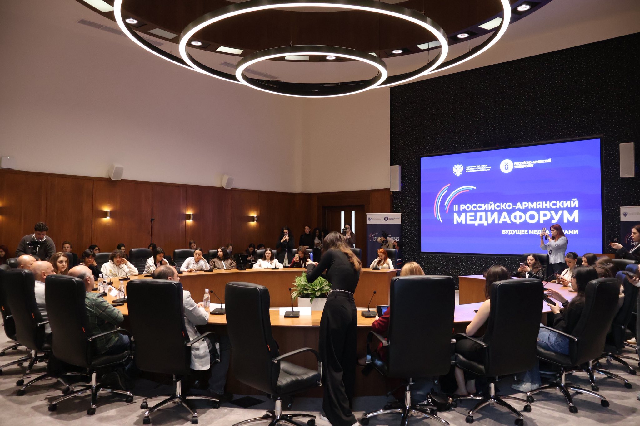 Мэтры медиаиндустрии ответили на вопросы студентов из России и Армении, солидарно подчеркнув, что развитие технологий открывает уникальные возможности для молодых журналистов, а ключ к успеху — умение использовать ИИ в качестве нового инструмента, во благо обществу, сохраняя при этом критическое мышление, творческий подход и профессиональную ответственность.