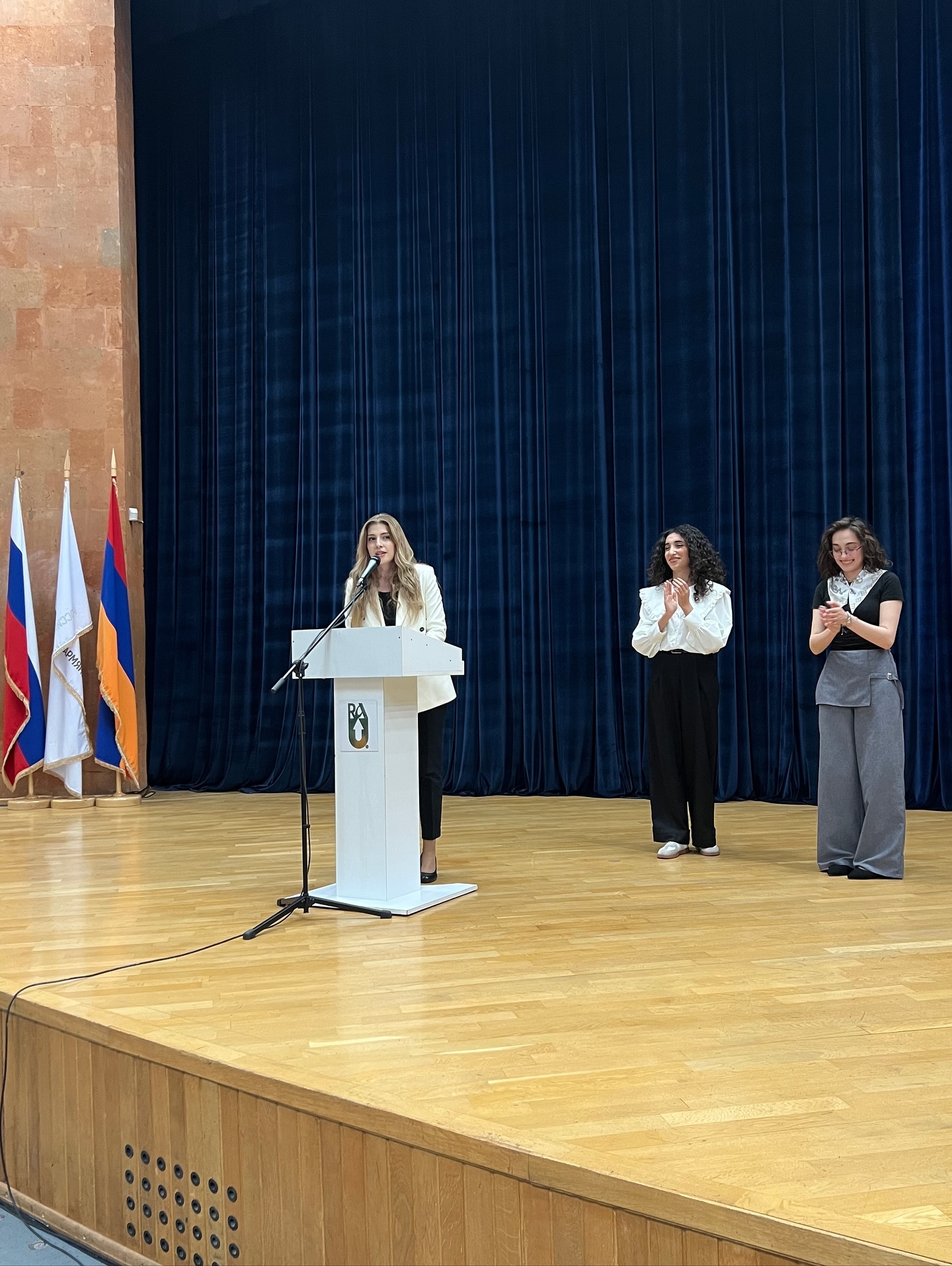 Ректор РАУ, профессор Эдвард Сандоян поприветствовал участников, а также вручил Милене Аветисян благодарственную грамоту за активное участие и преданность работе Студсовета.