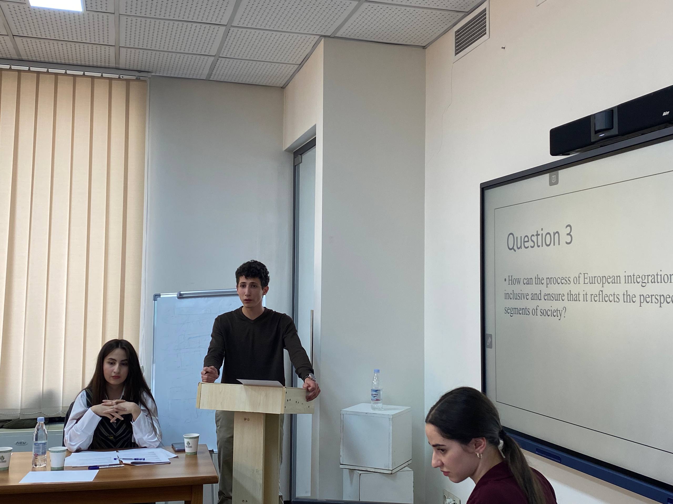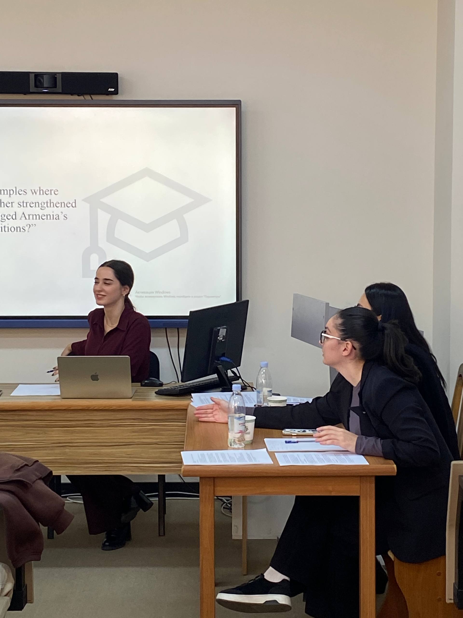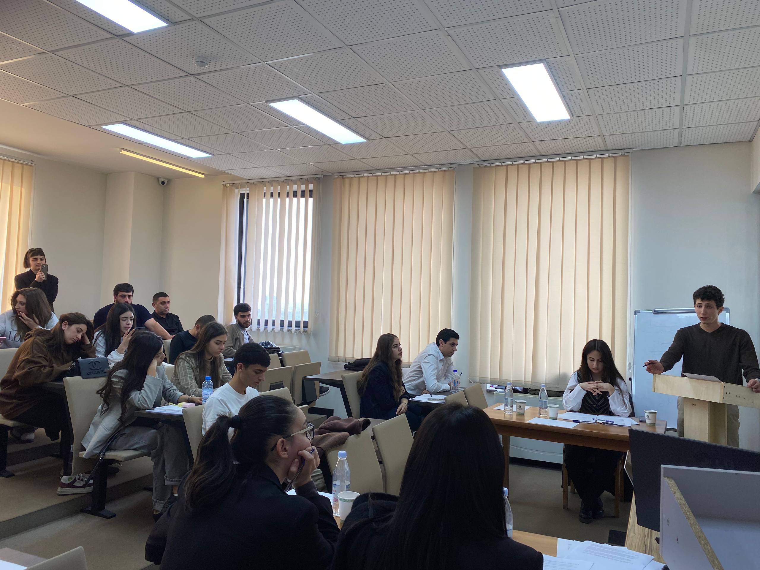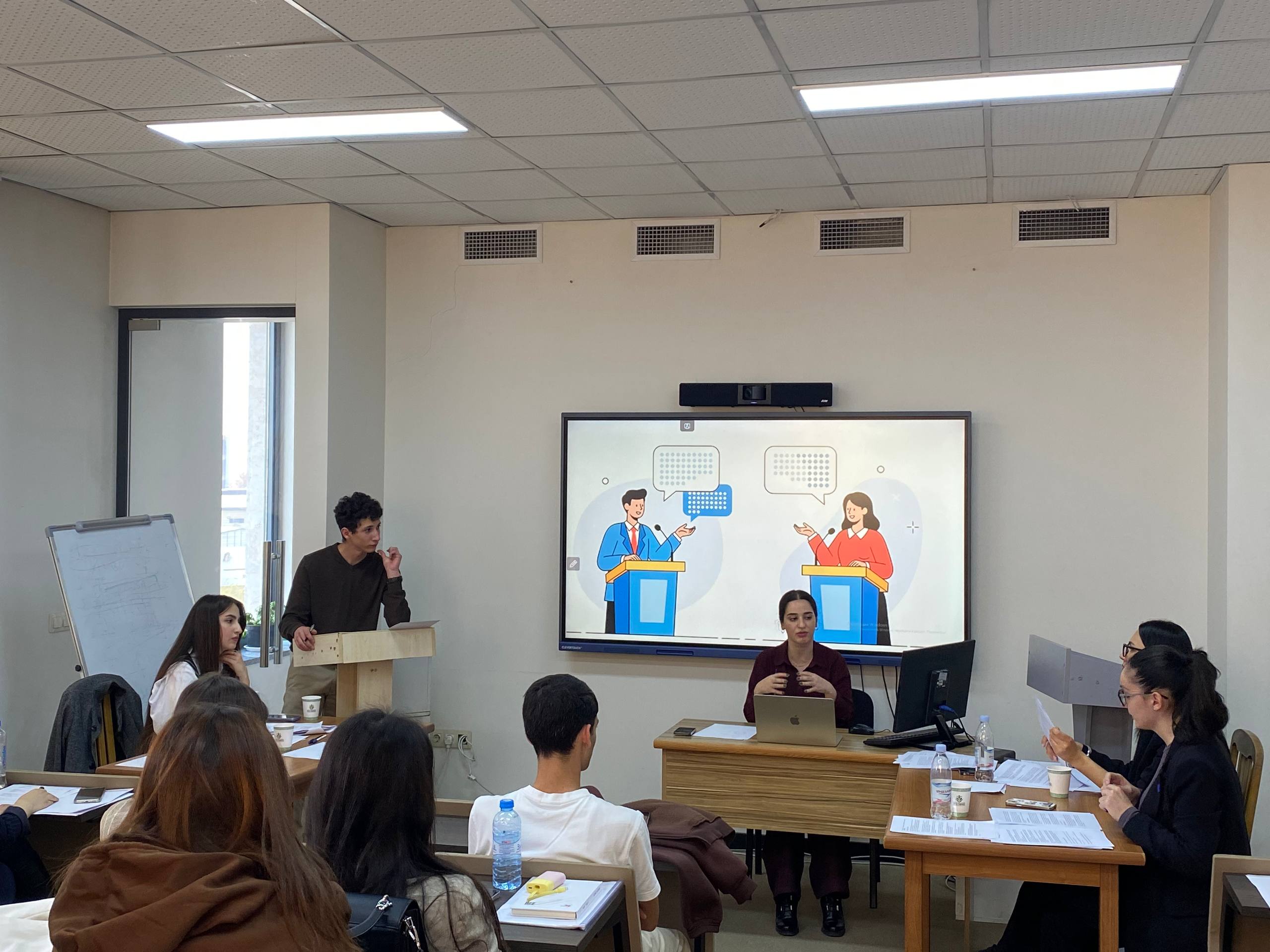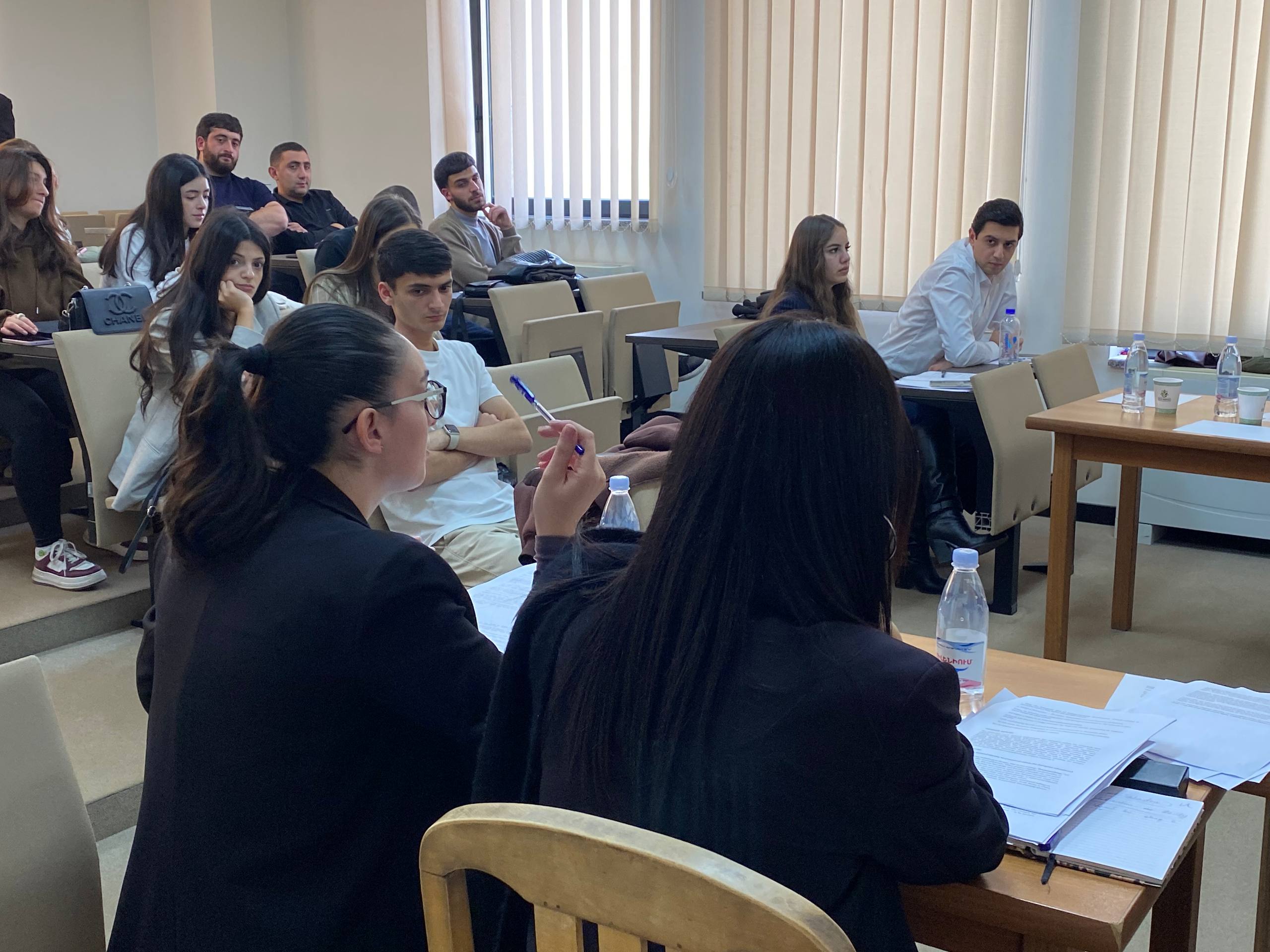 Студенты по направлению "Международные отношения" и преподаватель РАУ Карине Хачатрян провели аргументированные дискуссии.