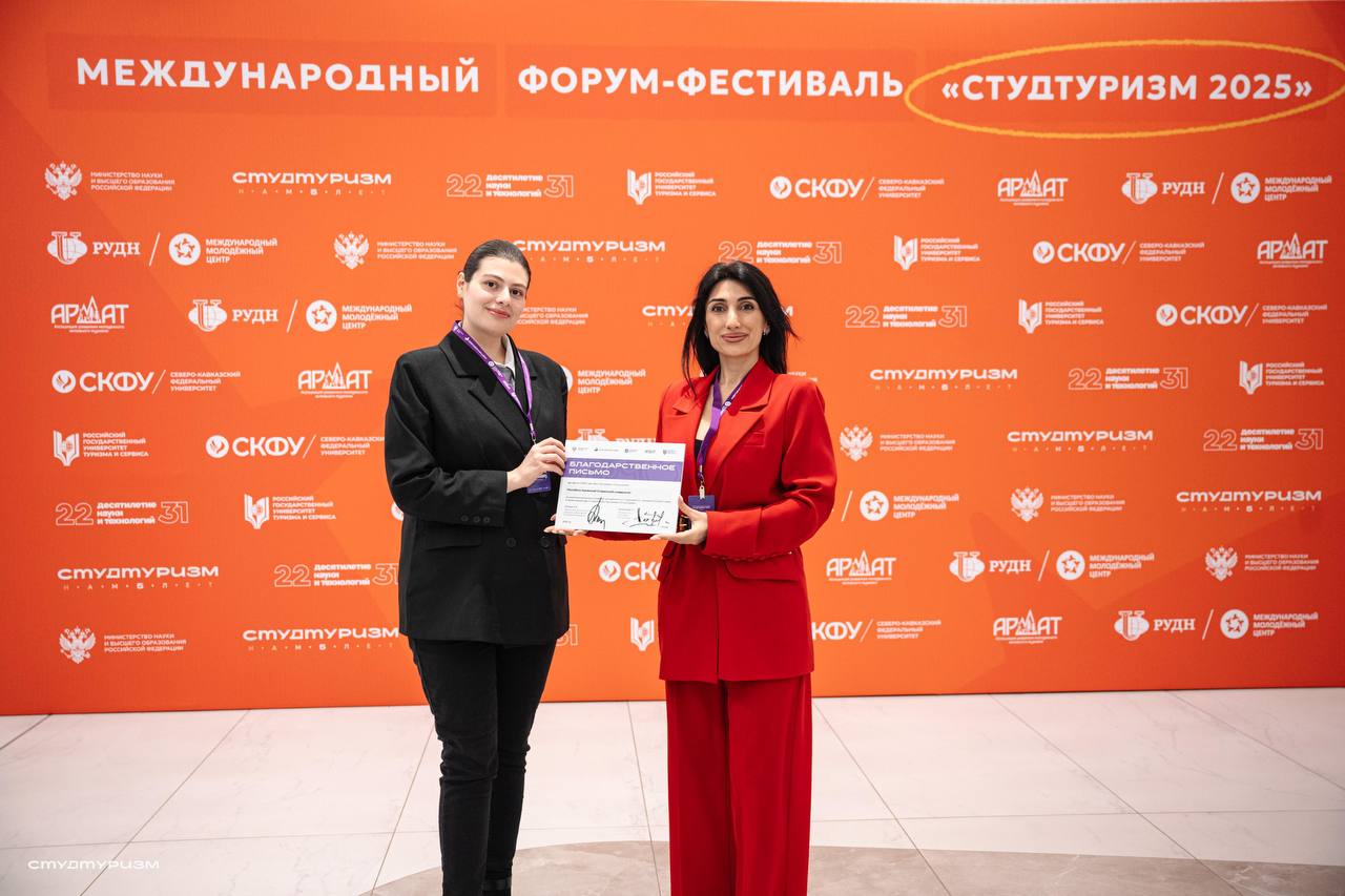 Заведующая кафедрой туризма и сферы услуг ИЭБ Российско-Армянского университета Армине Агаджанян и студентка Кристине Ходжагорян приняли участие в Международном форуме-фестивале "Студтуризм 2025", состоявшемся 3-5 декабря в Москве.