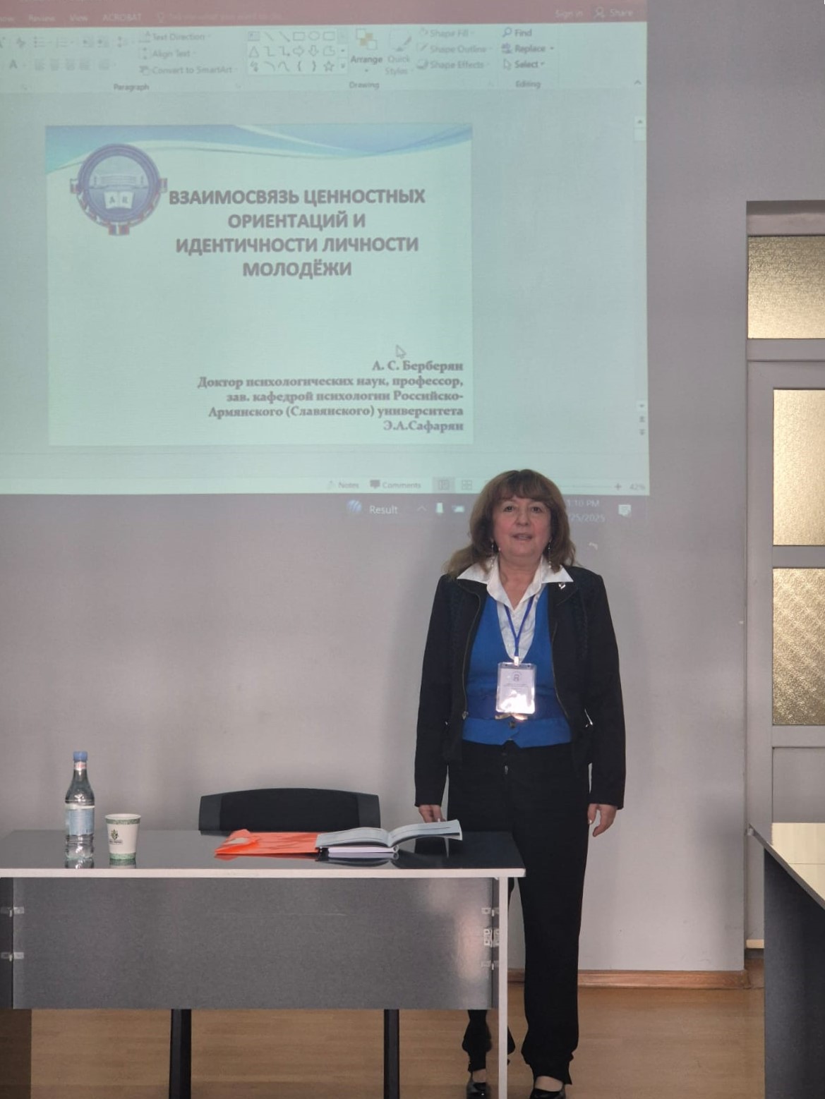 "Ценностные ориентации и идентичность личности тесно связаны между собой и играют ключевую роль в процессе личностного развития, особенно в юношеском возрасте. В рамках различных психологических концепций идентичность рассматривается как динамическая структура, формирующаяся под воздействием как внутренних, так и внешних факторов. Система ценностей, в свою очередь, отражает жизненные приоритеты индивида и служит основой для формирования его самоопределении. Устойчивость идентичности во многом опирается на принятие и осознание значимых для личности ценностей. Формирование целостного "Я" тесно связано с тем, насколько глубоко и осознанно индивид интегрирует свои ценностные ориентиры в структуру личности. Таким образом, ценности выступают неотъемлемой частью процесса идентификации, а сама идентичность — как результат успешного усвоения и реализации этих ценностей в повседневной жизни. Результаты исследования могут быть применены в практике психологического сопровождения молодёжи, направленной на развитие осознанности, самоопределения и устойчивой идентичности", — подчеркнула Ася Берберян. В завершение она привела слова известного психолога Эриха Фромма: "Мы — это то, что внушили себе сами и что внушили нам другие".