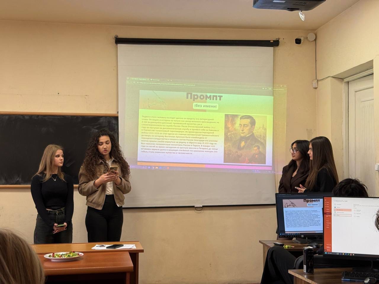 В ходе встречи студенты-журналисты РАУ попробовали создать мультимедийный промт — творческого проекта, объединяющего работу с технологиями генеративного искусственного интеллекта и журналистскими инструментами.